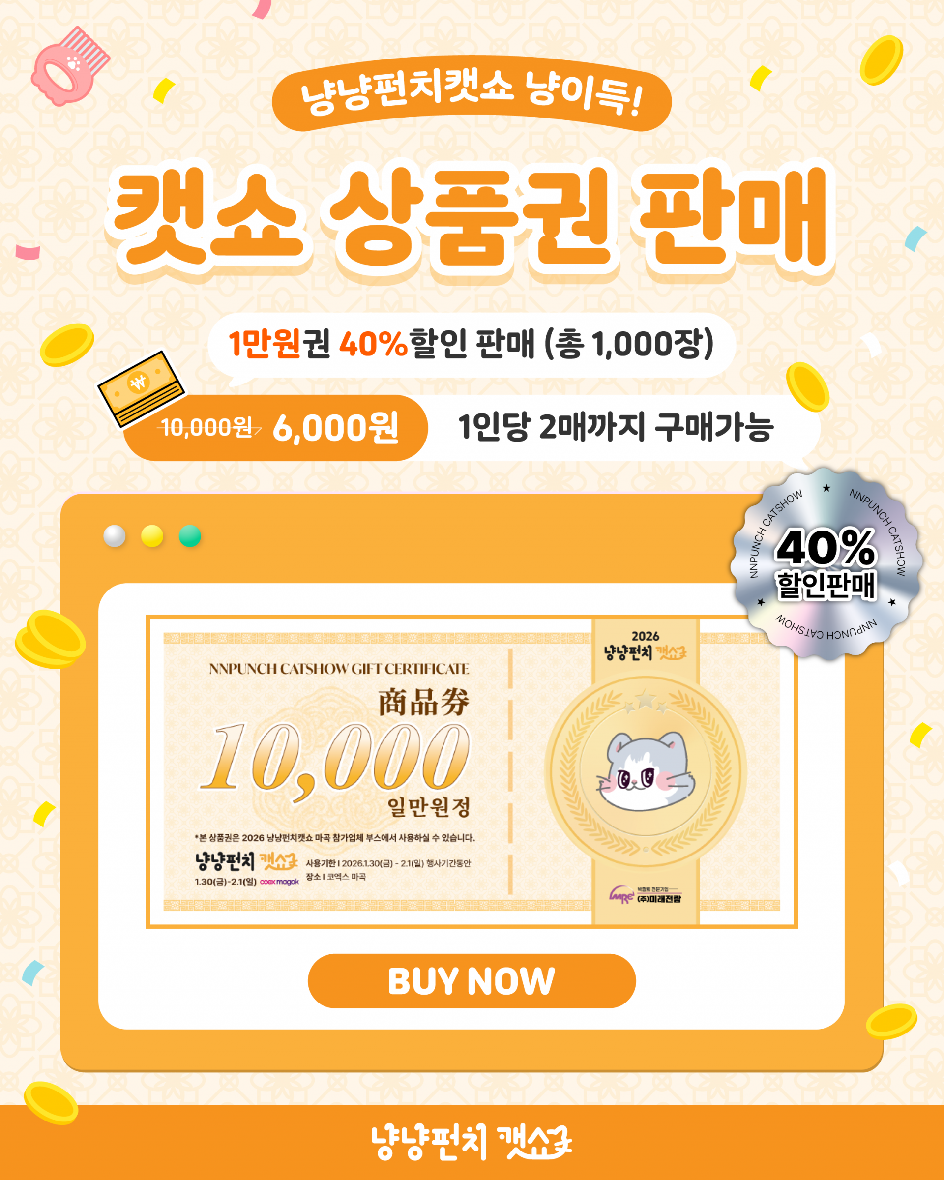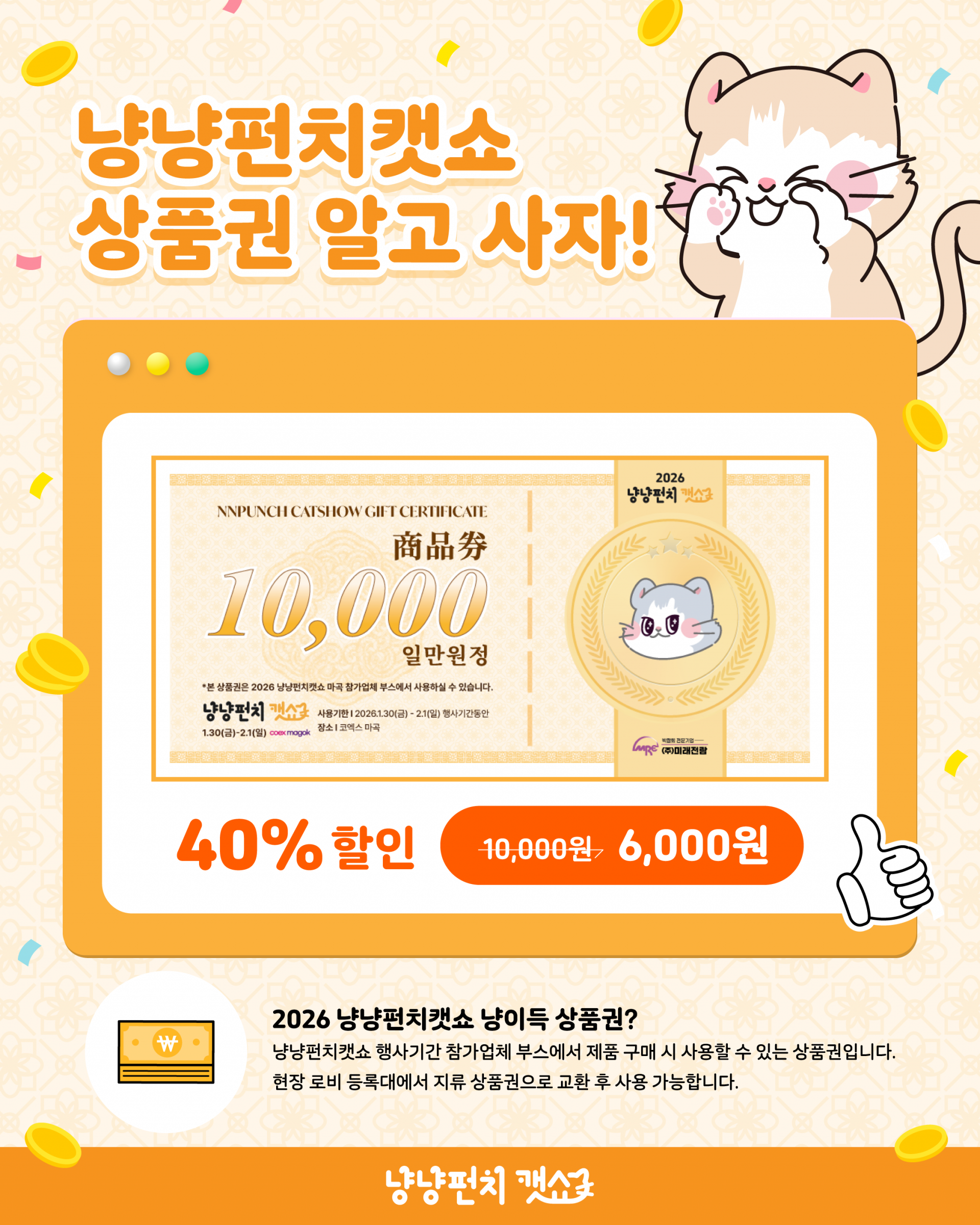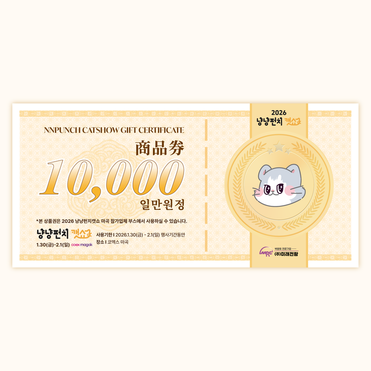 - 본 상품권은 2026 냥냥펀치캣쇼 마곡 전시장 내 참가업체 부스에서만 사용할 수 있습니다.