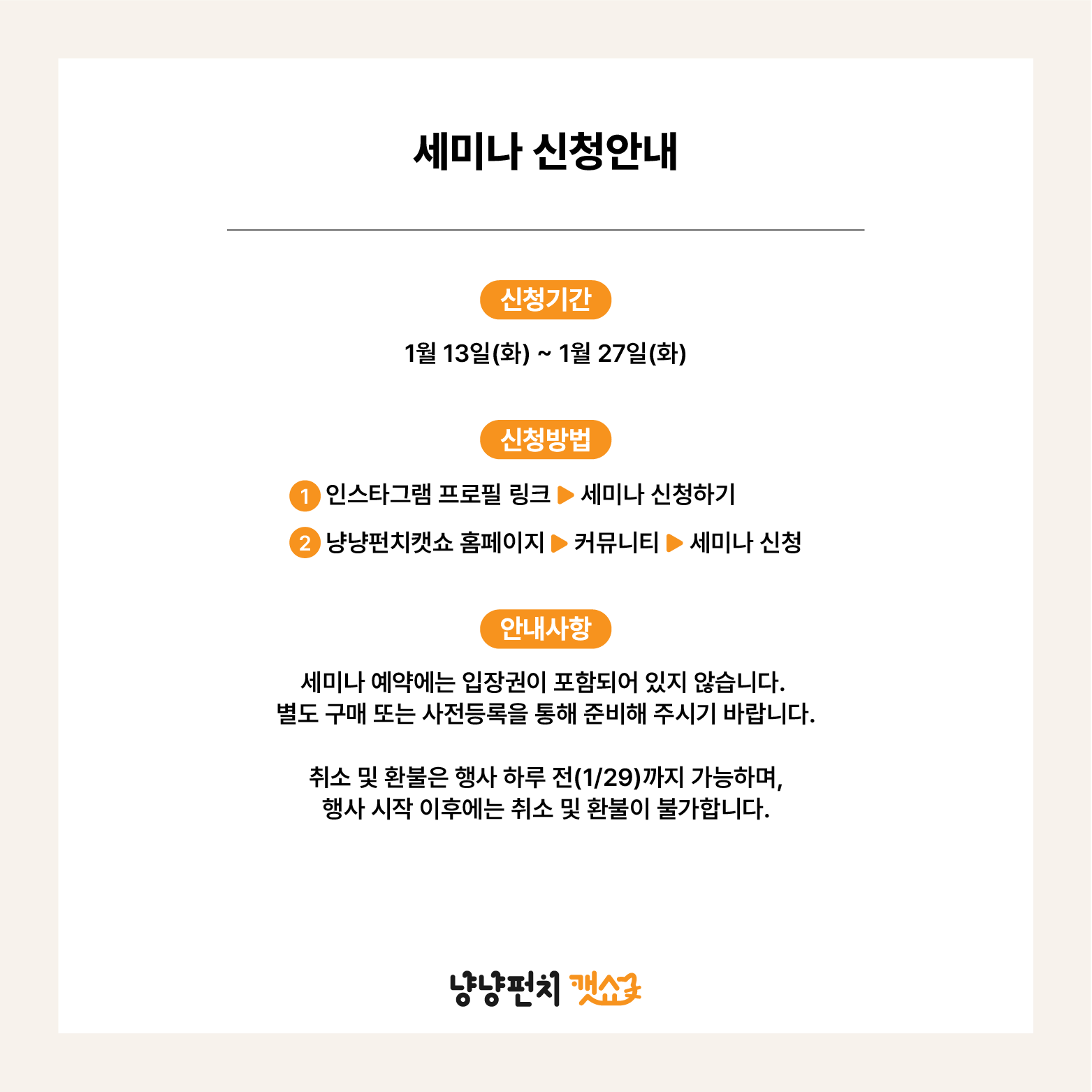 - 취소 및 환불은 행사 하루 전(1/29)까지 가능하며,