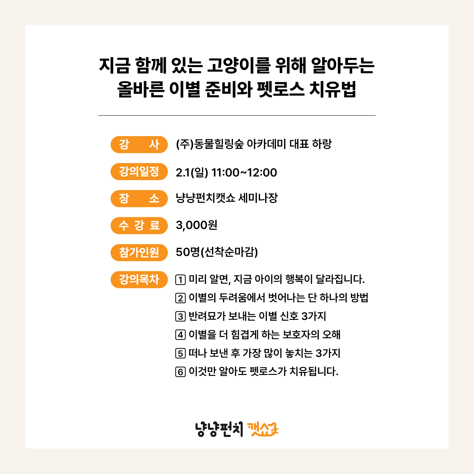 2.1 (일) | 11:00 ~ 12:00 올바른 이별 준비와 펫로스 치유법